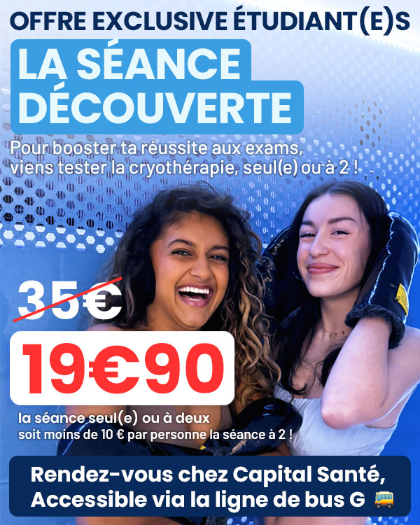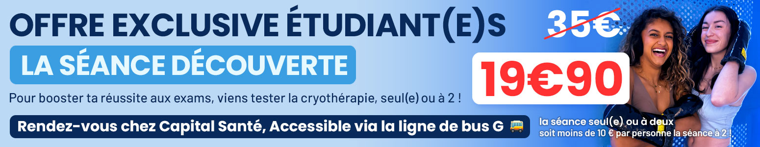 Boostez votre forme avant les examens avec la Cryo à 19,90 € ! ( seul (e) ou à deux…